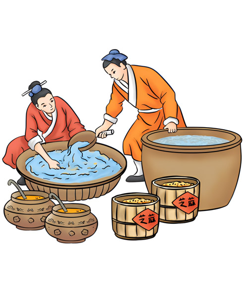 - 芝麻經(jīng)過漂洗浸泡,既清除了芝麻中的并肩泥等雜質(zhì),又讓水分充分滲透到完整細(xì)胞內(nèi)部,使凝膠體膨脹,再經(jīng)過加熱炒籽,就可以使細(xì)胞破裂,油體原生質(zhì)流出。